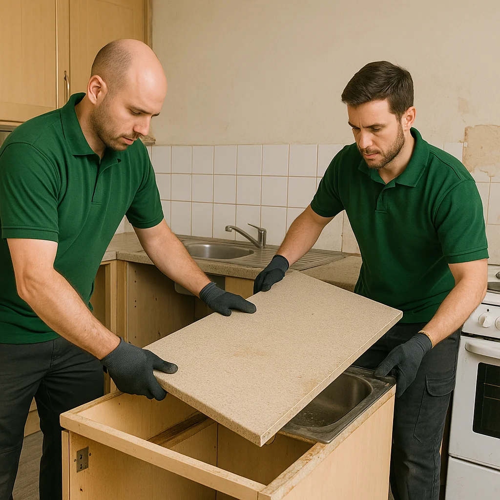 Safe dismantling and removal of kitchen cabinets, cupboards, and worktops of all types.